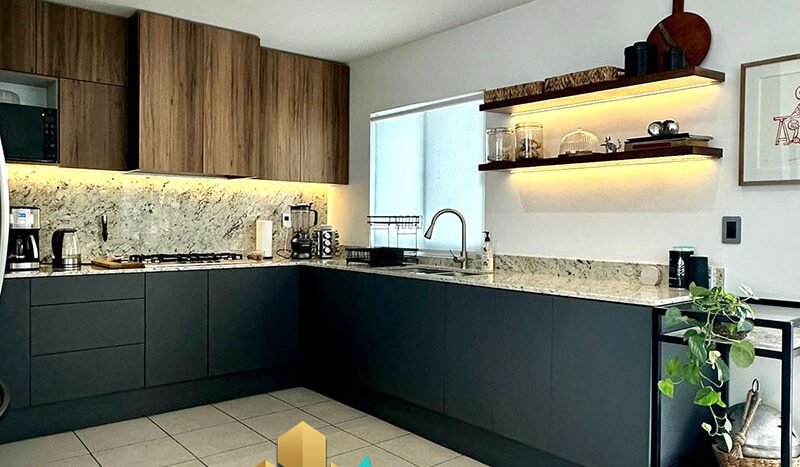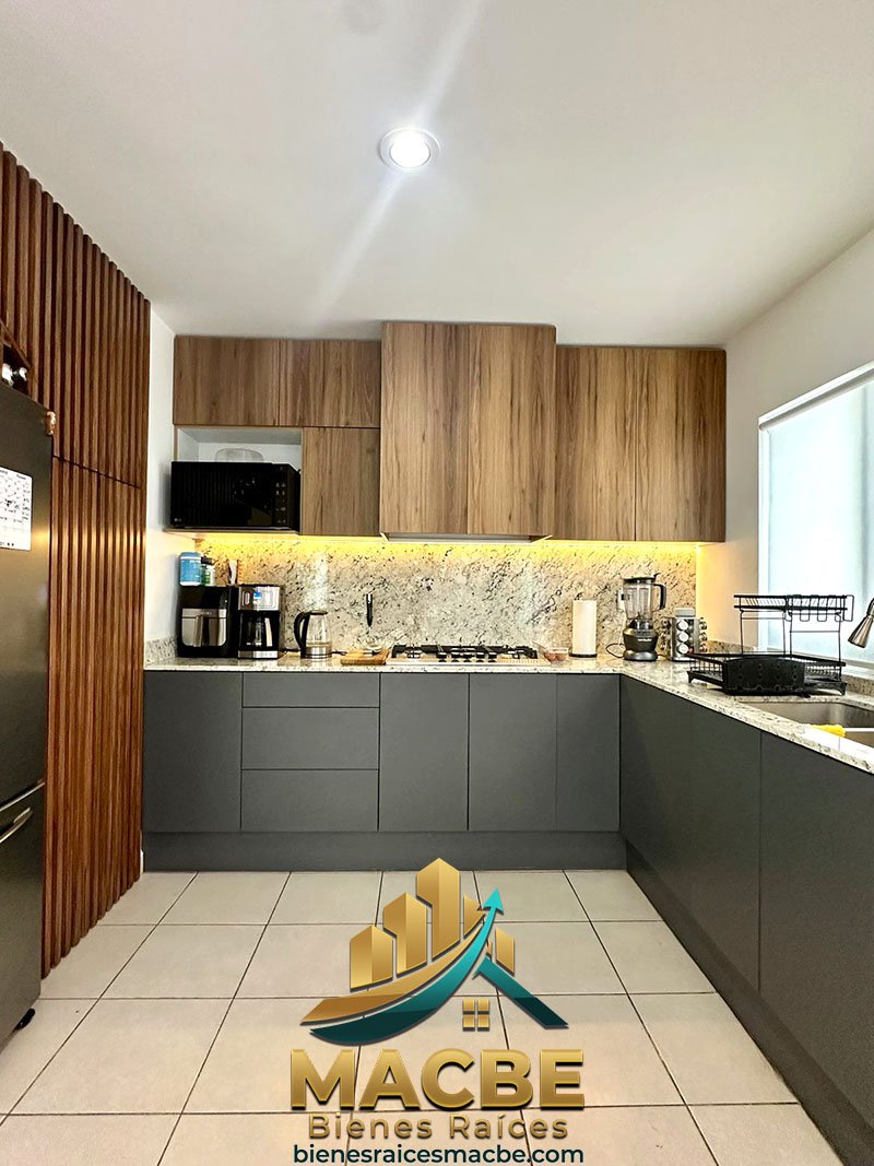 - Cocina: El inmueble cuenta con una cocina equipada, diseñada para ser funcional desde el primer día, con gabinetes y espacios de almacenamiento integrados.