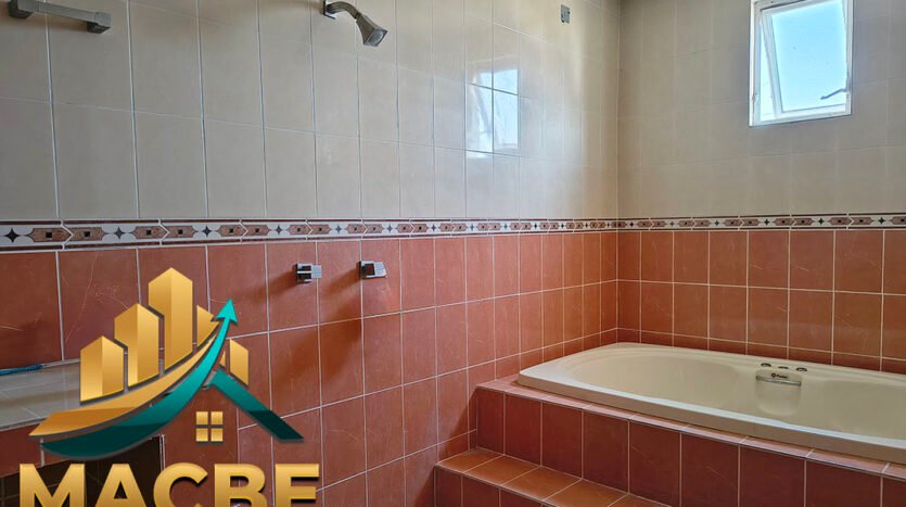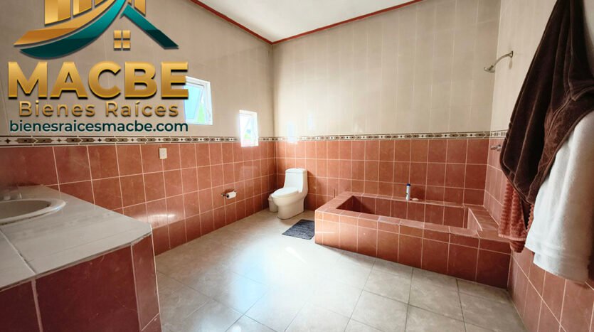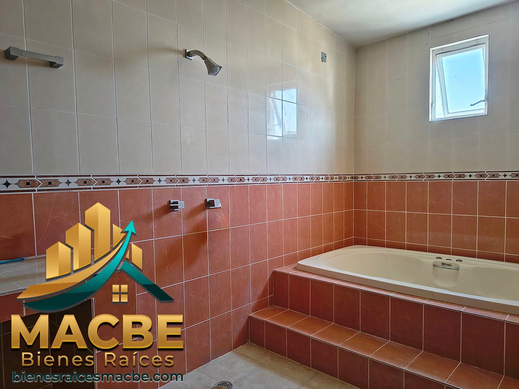 • Recámara Principal: Es el espacio más destacado de la casa. Sus dimensiones son enormes, permitiendo una cama King Size, burós y muebles auxiliares. Cuenta con un vestidor y un baño privado equipado con tina.