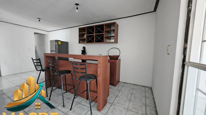• Sala y Comedor: A diferencia de las casas de interés social o medio, aquí el área social permite instalar una sala completa y un comedor para 8 o 10 personas con holgura.