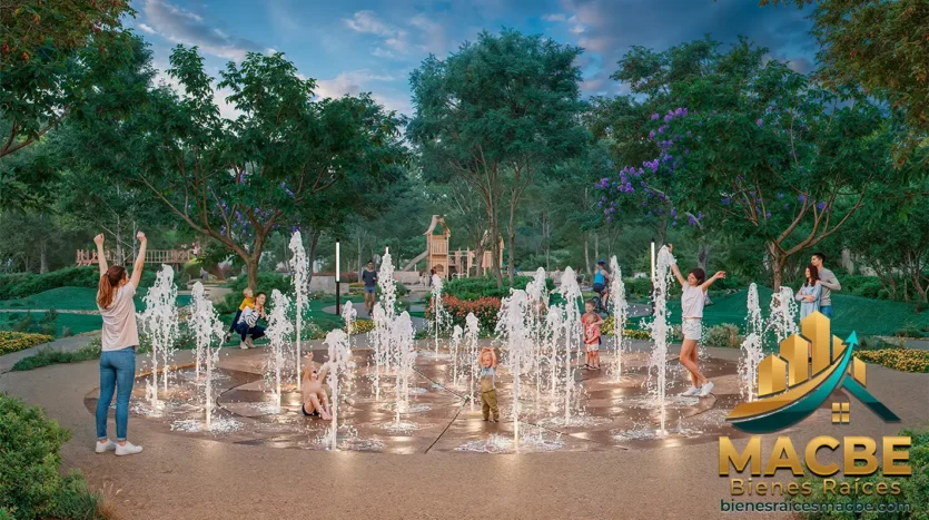 Uno de los pilares de este desarrollo es el equipamiento compartido. Los residentes tienen acceso a más de 4,000 metros cuadrados de áreas verdes distribuidas estratégicamente. Estas zonas no son solo estéticas, sino funcionales, e incluyen: